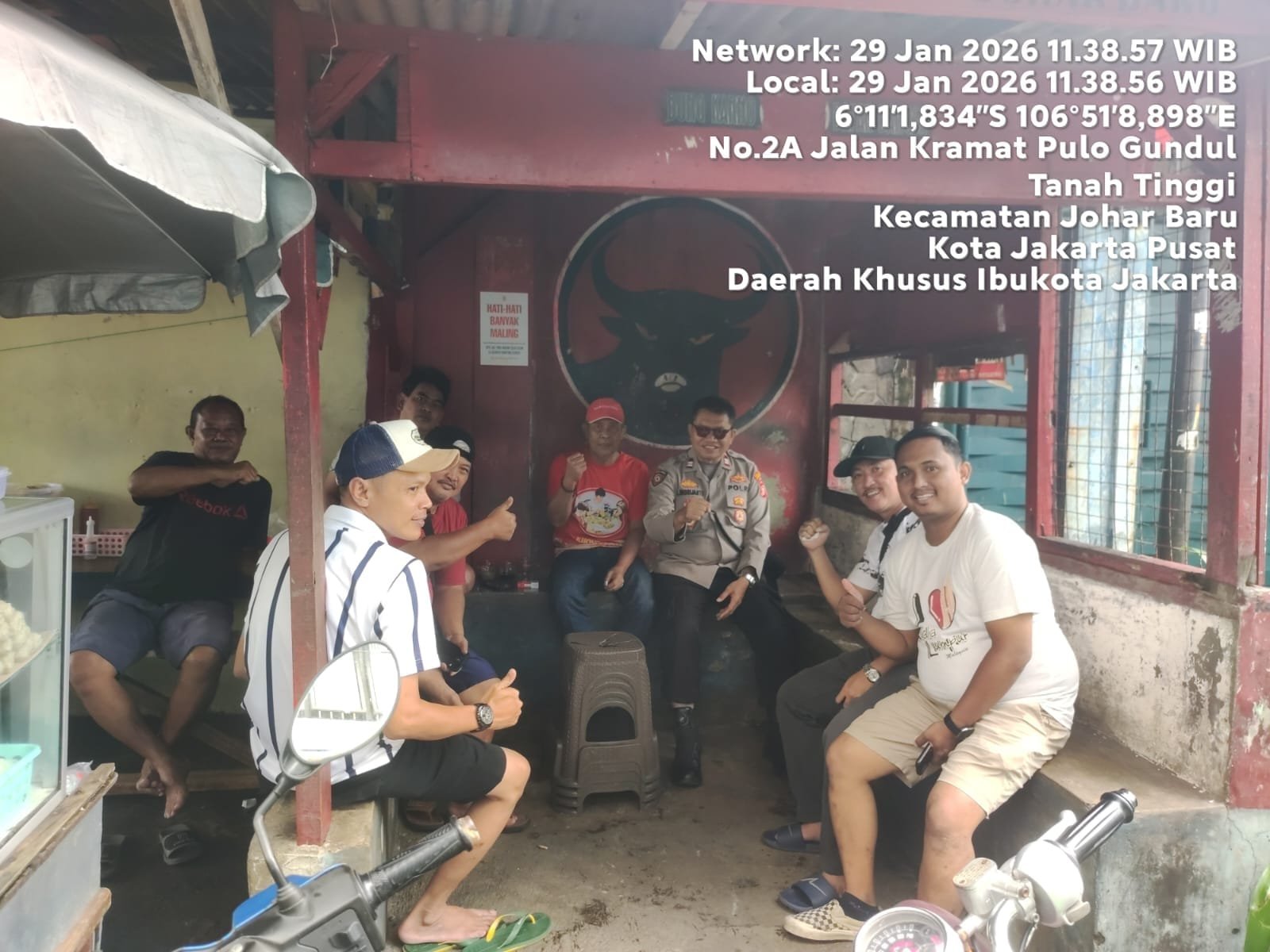Harmoninews.com (Jakarta Pusat) — Upaya menjaga keamanan dan ketertiban masyarakat (kamtibmas) terus dilakukan jajaran Polsek Johar Baru melalui kegiatan sambang dialogis di lingkungan warga. Pada Senin (19/1/2026) sekitar pukul 12.00 WIB, Kapolsubsektor Kayu Awet Kelurahan Johar Baru, Aiptu Lukas Indrijanto, melaksanakan silaturahmi dan pemantauan wilayah di Jalan Percetakan Negara IV RW 009, Kelurahan Johar Baru, Jakarta Pusat.
