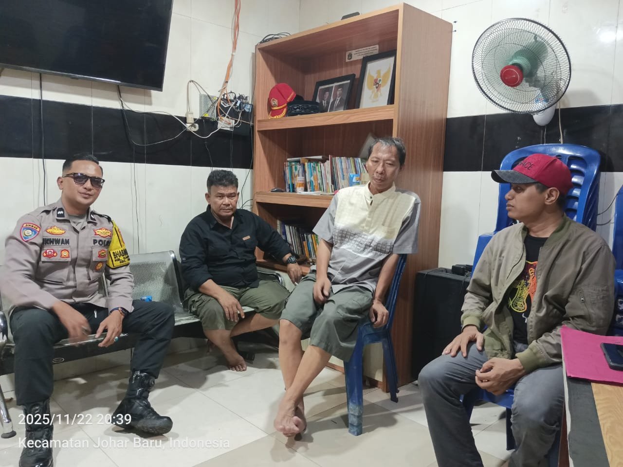 Harmoninews.com (Jakarta Pusat) – Bhabinkamtibmas Kelurahan Kampung Rawa, Aipda Ikhwan, melaksanakan patroli wilayah dan kunjungan ke Pos Kamling RW04, Jalan Rawa Selatan 5 RT06 RW04, Kelurahan Kampung Rawa, Kecamatan Johar Baru, pada Sabtu (22/11/2025) pukul 21.00 WIB.