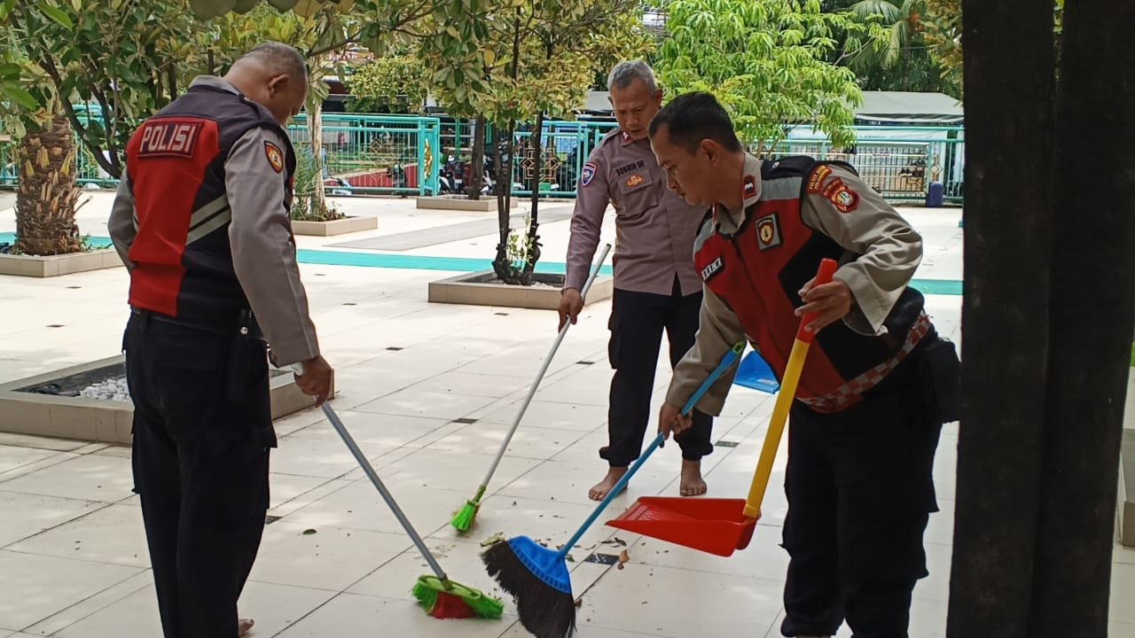 Dengan penuh kebersamaan, para personel tampak membersihkan lantai masjid, tempat wudhu, kaca jendela, hingga merapikan area sekitar masjid. Kegiatan ini tidak hanya menjadi bentuk kepedulian terhadap kebersihan tempat ibadah, tetapi juga wujud nyata kehadiran Polri di tengah masyarakat dalam kegiatan sosial dan keagamaan.