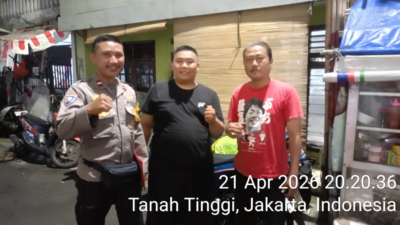 Kegiatan yang berlangsung sekitar pukul 20.15 WIB di Jalan Sumbadra RT 04/07 tersebut dilaksanakan oleh Bhabinkamtibmas Kelurahan Tanah Tinggi, Aipda Tangguh, dengan menyambangi poskamling dan berdialog langsung bersama Ketua RT setempat.
