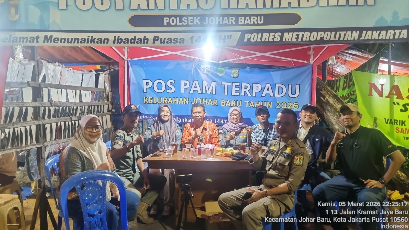 Harmoninews.com (Jakarta Pusat) – Personel Polsek Johar Baru bersama unsur tiga pilar dan masyarakat melaksanakan pemantauan Pos Pantau Ramadhan 1447 H di kawasan Jalan Kramat Jaya Baru RW 010, Kelurahan Johar Baru, Kecamatan Johar Baru, Jakarta Pusat, Kamis (5/3/2026) pukul 22.00 WIB.