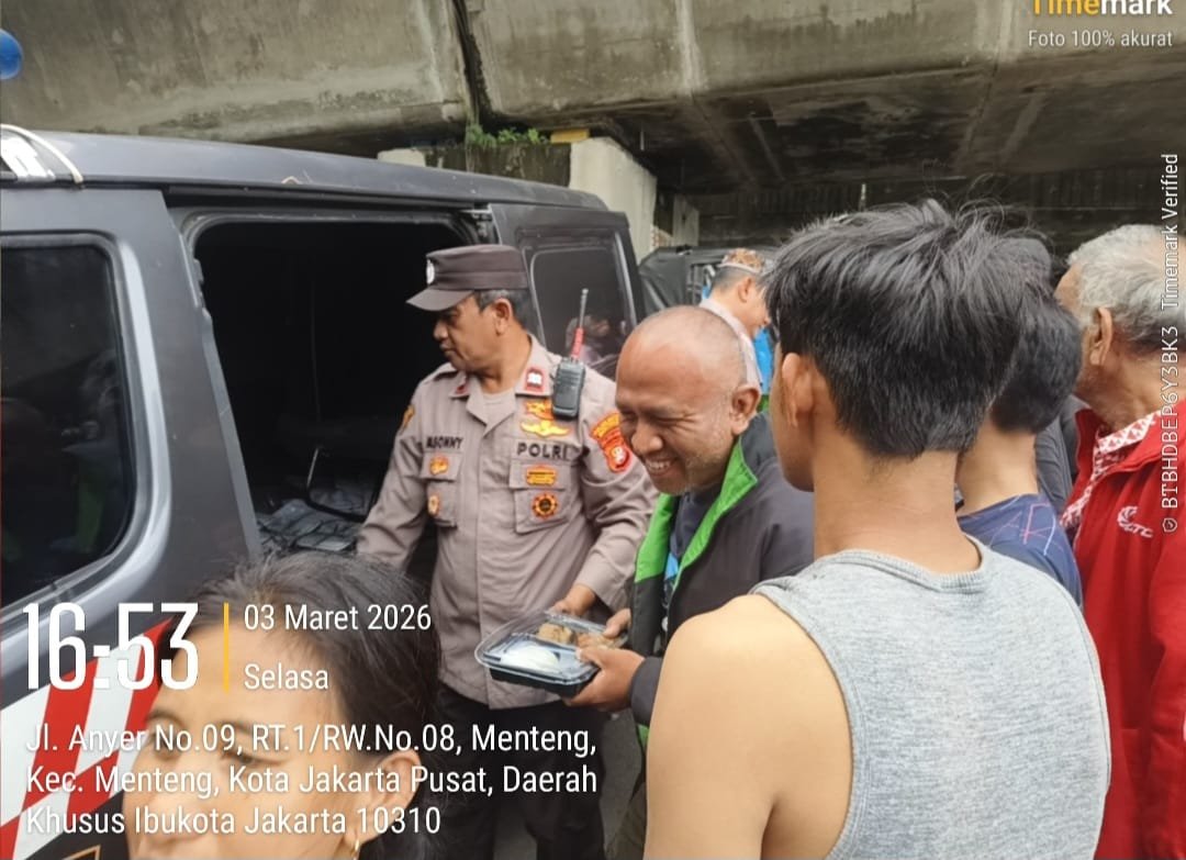 Harmonews.com (Jakarta Pusat) – Dalam rangka menyemarakkan bulan suci Ramadan serta memperkuat nilai kepedulian sosial, Polsek Metro Menteng melaksanakan kegiatan Ramadhan Suci Polri Berbagi dengan membagikan nasi siap saji kepada masyarakat. Kegiatan sosial ini dilaksanakan di sekitar depan Kantor Kelurahan Menteng, Jalan Anyer, Kecamatan Menteng, Jakarta Pusat, dengan sasaran warga sekitar serta masyarakat yang melintas menjelang waktu berbuka puasa. Selasa (3/3/2026)
