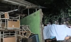 “Jadi ini pagar pembatas wilayah kita, RT 13, dengan SMA 103. Memang pagar ini sudah doyong cukup lama. Kami sudah informasikan ke pihak sekolah, dan mereka merespon positif dengan melakukan pengukuran dan mendatangkan tukang. Tapi belum sempat diperbaiki, temboknya keburu ambruk,” ujar Candra.