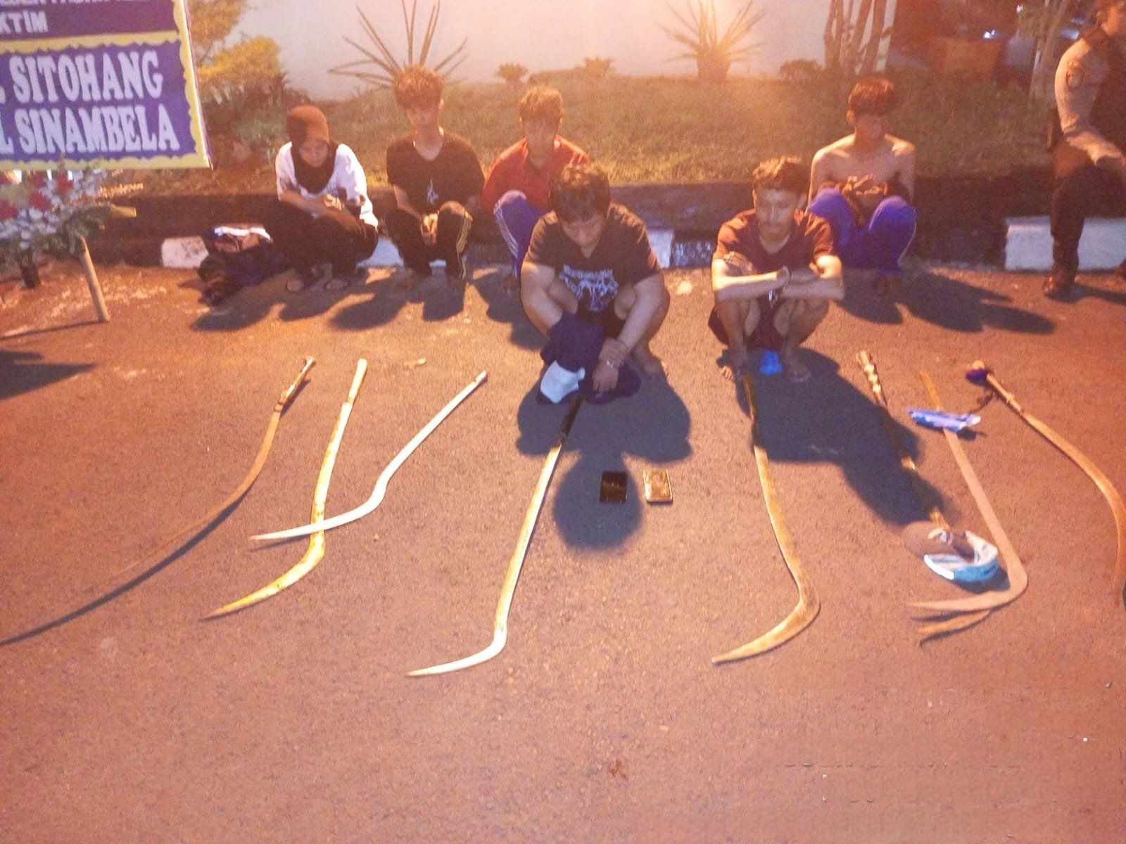 ” Dari enam pelaku tawuran yang diamankan terdapat barang bukti senjata tajam jenis celurit dan corbek serta 1 buah panah berikut 2 anak panah disita Tim TP3.” Jelas Kasat Samapta Kompol Capt. Hendra saat dikonfirmasi.